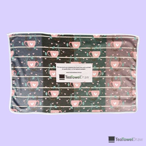 The best thing about these tea towels is that the design can cover the whole tea towel—full-colour off-the-edge printing. The design is printed on the entire tea towel fabric, and then the hem is sewn down.